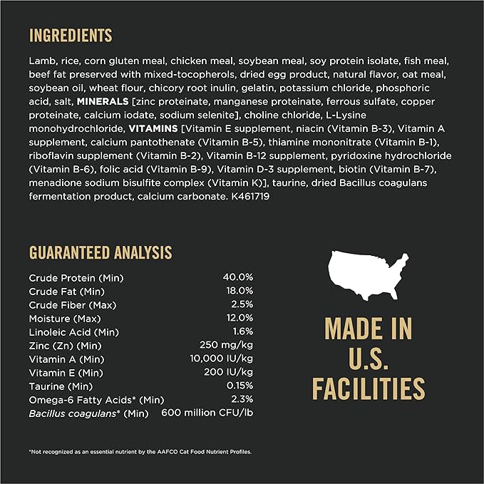 - High protein formula, with real lamb as the first ingredient
