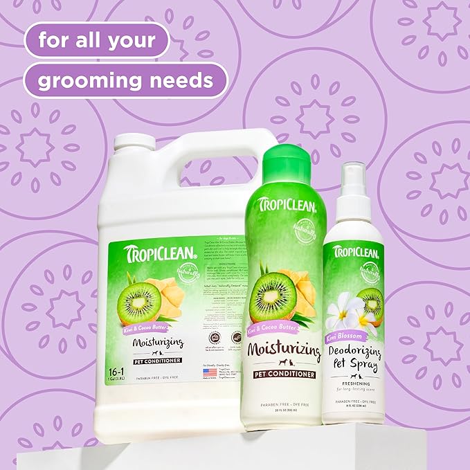 TropiClean Dog Conditioner, Professional Detangling & Moisturizing Conditioner, Puppy Safe, Made in the USA, Kiwi & Cocoa Butter Scent, 2.5 Gallon