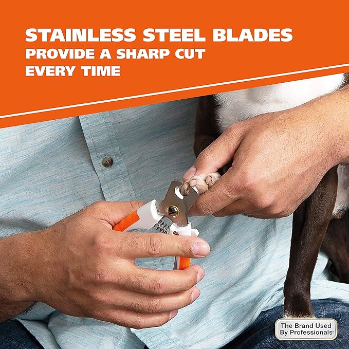 - Designed for safety – ergonomic rubber grips allow for secure, comfortable grips during use to keep the nail clippers stable and make it easier to get the right angle to cut your pets nails to the ideal length; Stainless steel blades make nail cutting effortless