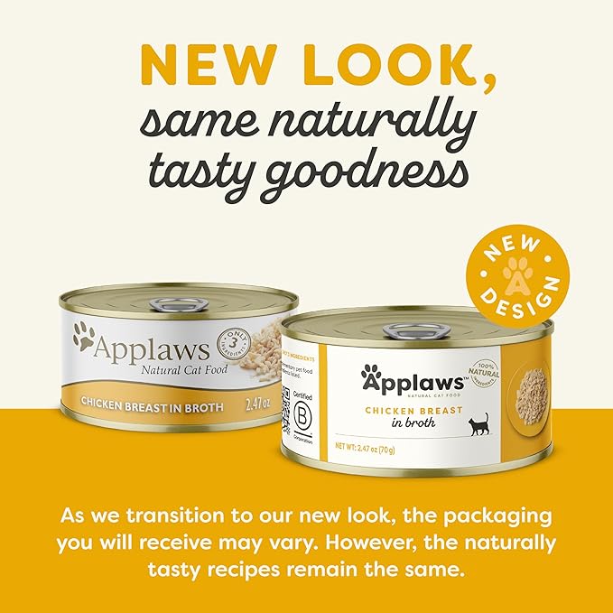 Applaws Natural Wet Cat Food, 24 Count, Limited Ingredient Canned Wet Cat Food, Chicken Breast in Broth, 2.47oz Cans