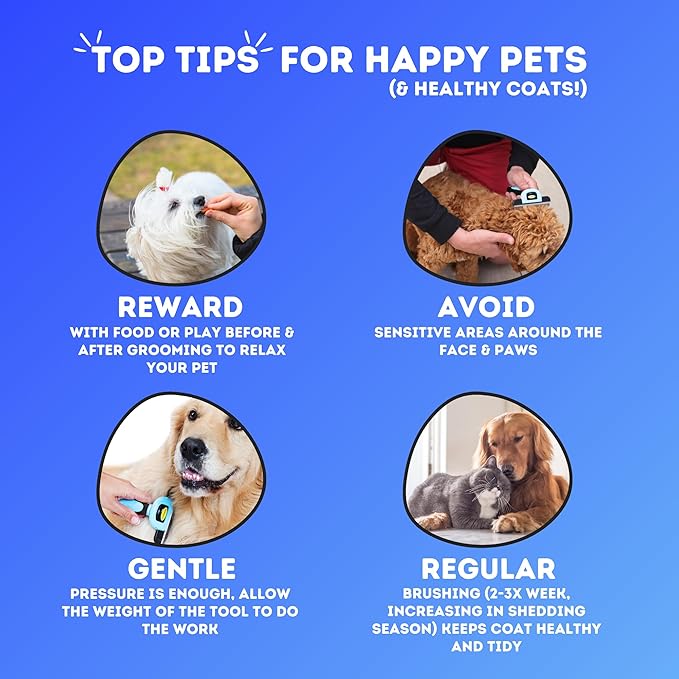 - MULTIPLE BENEFITS: Our dog and cat brush for shedding removes loose hairs and lightly thins the coat without causing discomfort. This improves the health and appearance of your pet's coat, relieves stress, stimulates blood circulation, and helps you to keep your home fur-free too!