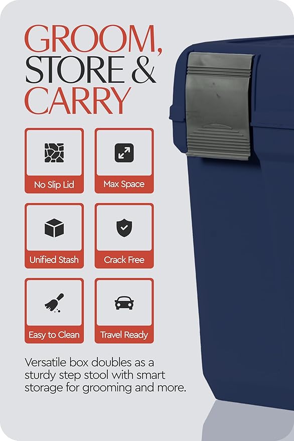 - ✅ More Than Just a Grooming Box: This grooming tote box doubles as a step for when you need one. Thanks to a non-slip surface on the lid you can safely use the box as a step to help groom your horse.
