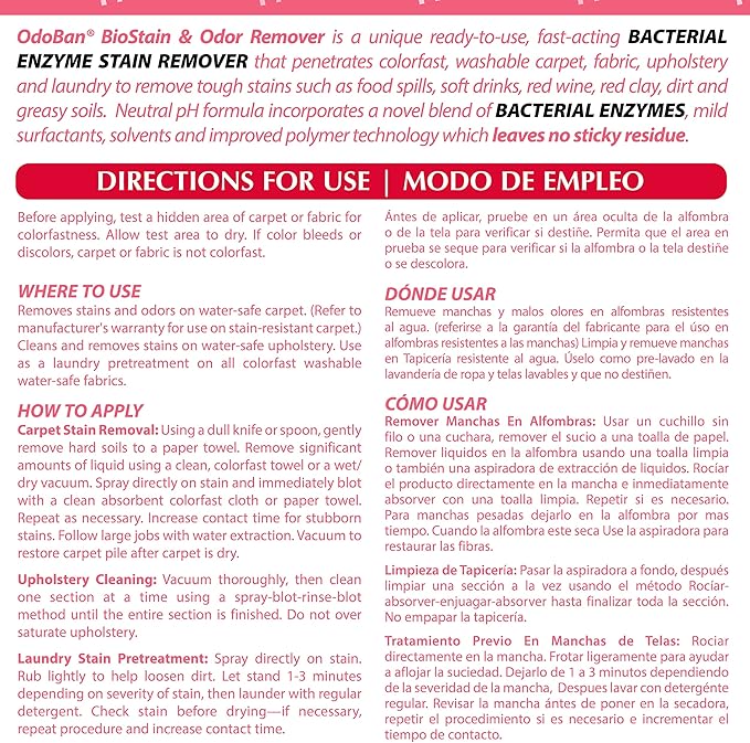 OdoBan Professional Cleaning and Odor Control Solutions, Ready-to-Use Biostain and Odor Remover, Made in the USA, 1 Gallon