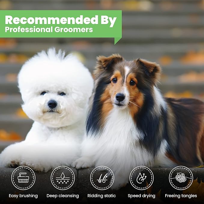 Our dog actually enjoys bath time now thanks to the gentle shampoo and brush we got here. Everything smells great and leaves her coat super soft.