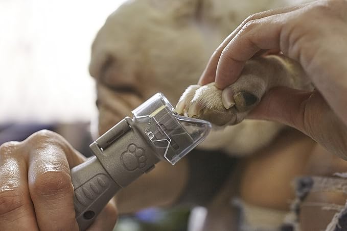 - The attachment captures nail dust and contains a fur guard, with a clear cap for easy viewing
