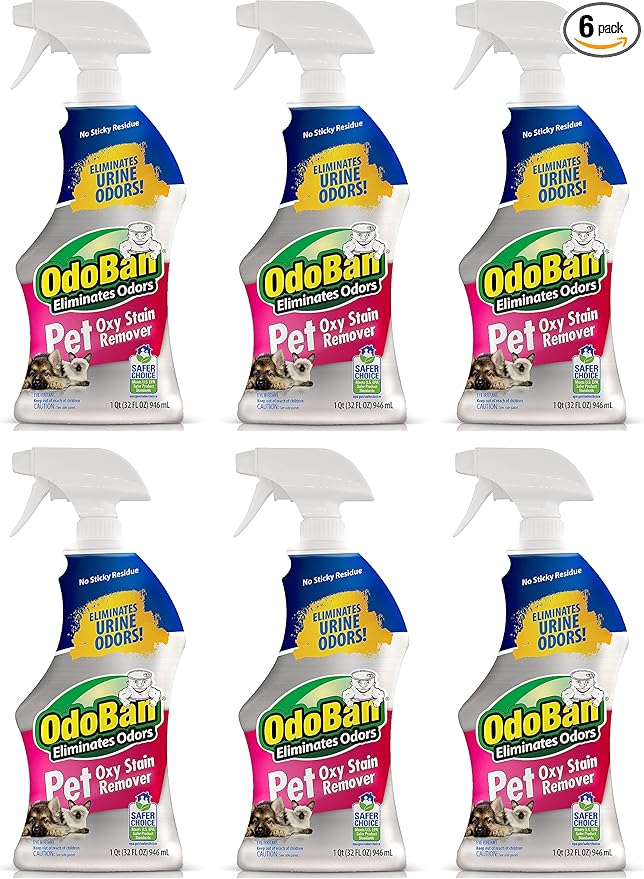 OdoBan Pet Solutions Oxy Stain Remover, Pet Stain Eliminator, Made in the USA, 6-Pack, 32 Ounce Spray Each