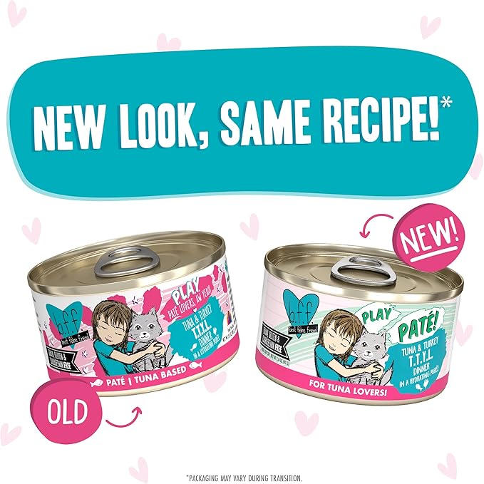 Weruva B.F.F. Play - Best Feline Friend Paté Lovers, Aw Yeah!, Tuna & Turkey T.T.Y.L. with Tuna & Turkey, 2.8oz Can (Pack of 12)