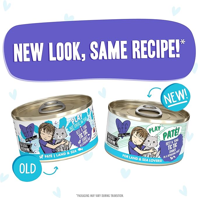 Weruva B.F.F. Play - Best Feline Friend Paté Lovers, Aw Yeah!, Beef & Tuna Tic TOC with Beef & Tuna, 2.8oz Can (Pack of 12)