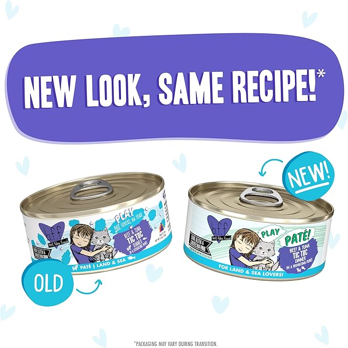 Weruva B.F.F. Play - Best Feline Friend Paté Lovers, Aw Yeah!, Beef & Tuna Tic TOC with Beef & Tuna, 5.5oz Can (Pack of 8)
