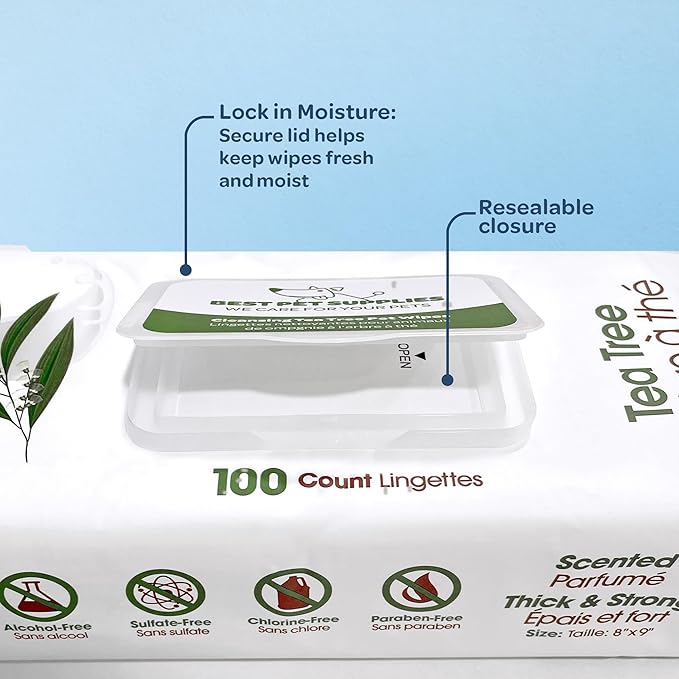 Best Pet Supplies Pet Wipes for Dogs - Dog Wipes Cleaning Deodorizing, for Coats, Ears, Paws - Cleansing, Tea Tree, 400 Count