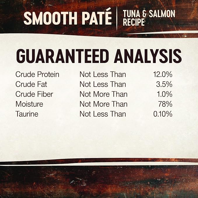 - TUNA AND SALMON PATE: This natural, grain free recipe features real tuna and salmon for a complete, balanced nutrition. Pate is completely smooth for an irresistible taste your cat will love.