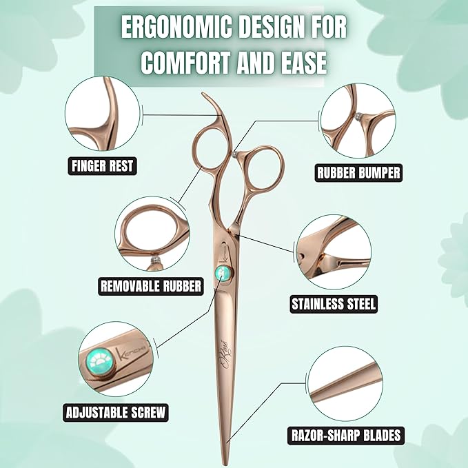 Kenchii Rose Dog Grooming Scissors, 8 Inch Straight Shears, Dog Scissors for Grooming, Ergonomic Design for Comfort and Precision, Heavy Duty, Durable and Sharp
