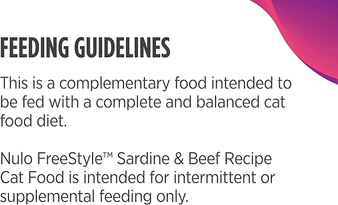 - SARDINE & BEEF RECIPE - Nulo Freestyle Cat & Kitten Wet Cat Food Pouch with limited-ingredients for maximum protein and nutrition contains only chicken and chicken broth for a healthy food complement, treat, or snack. Pack of 24, 2.8 Oz each.