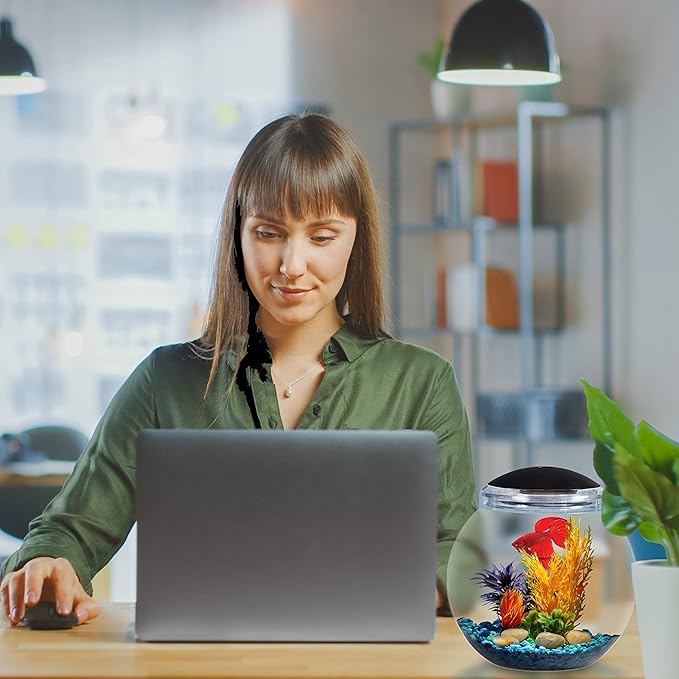 - Superior Viewing Angle - 360° panoramic viewing brings the best visual effect and crystal clarity, enabling you to enjoy the world of desktop fish tank from any angle.