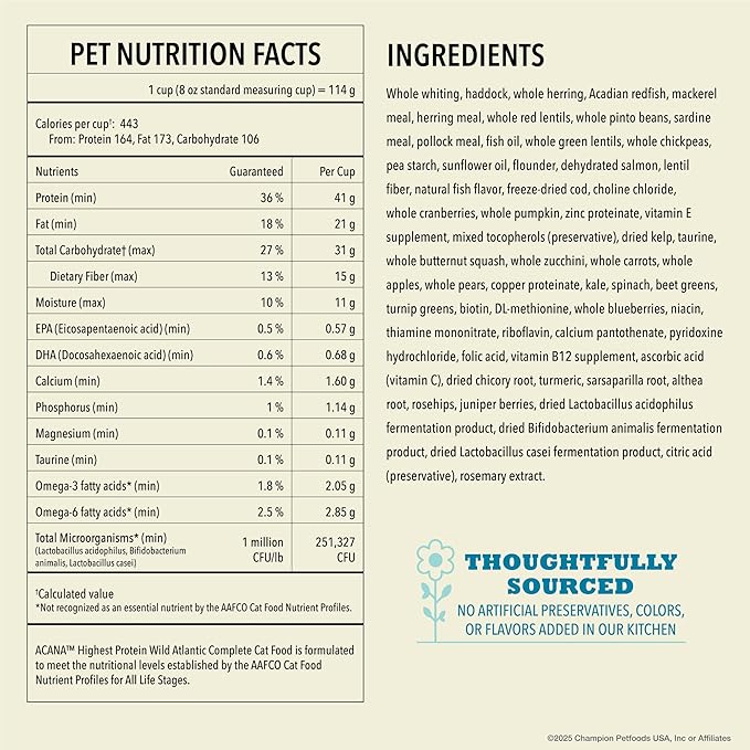 - One (1) 10 lb bag of ACANA Highest Protein* Wild Atlantic Saltwater Fish with Freeze-Dried Liver Dry Cat Food