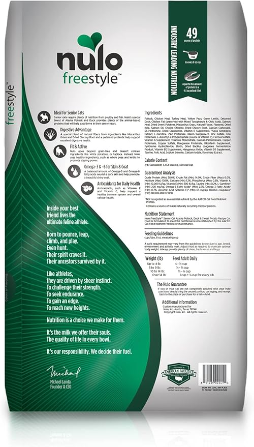 - Supports Healthy Digestion & Immune System – Nulo's small disc-shaped kibble is formulated with prebiotic fiber and guaranteed BC30 probiotics to help maintain healthy digestion and a strong immune system—a great choice for senior cats with sensitive systems.