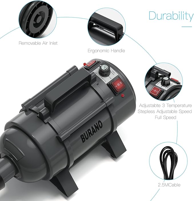 Burano High Velocity Dog Pet Stand Grooming Dog Dryer with 4.3HP Variable Dog Blow Dryer, Fluffy Dry