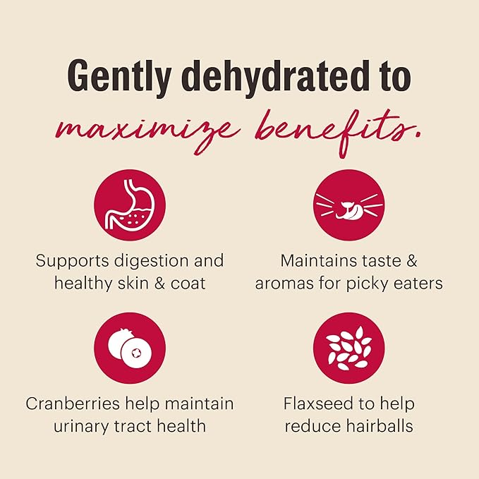 - PROTEIN PACKED & DELICIOUS: This recipe is packed with cage free chicken and is free of grain and feed-grade fillers. It's made with real whole food ingredients which are gently dehydrated for maximum taste, nutrient retention and easy digestion.