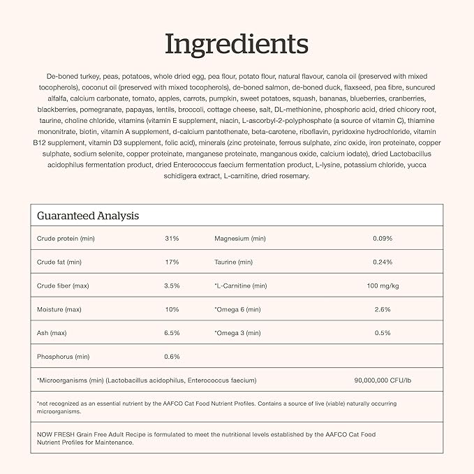 Now Fresh Grain-Free Dry Cat Food with Turkey, Salmon & Duck, Healthy Kibble for Adults Made with Real Meat & Fish, Chicken-Free, with Pumpkin & Probiotics for Sensitive Stomachs, 8 lb Bag