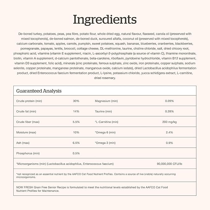 Now Fresh Grain-Free Senior Dry Cat Food with Turkey, Salmon & Duck, Premium Kibble Made with Real Meat & Fish, Chicken-Free Recipe, Supports Healthy Weight Management, 8 lb Bag