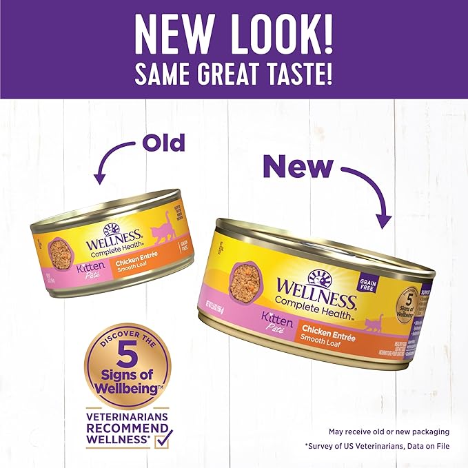 Wellness Complete Health Pate Kitten Wet Cat Food, Natural, Protein-Rich, Grain Free, 5.5 Ounce, 24 Pack, (Chicken)