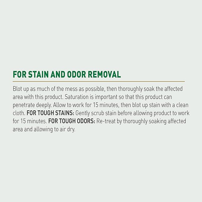 - FOR DOG URINE MESSES: Begins to break down and remove stains immediately on contact.