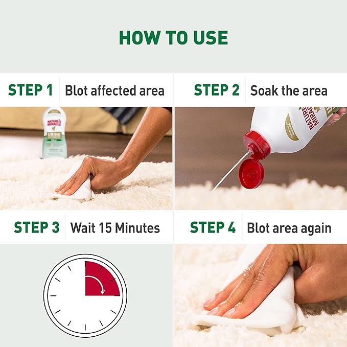 - POURABLE FORMULA: Just soak the affected area, allow to work for 15 minutes, then blot up stain with a clean cloth.