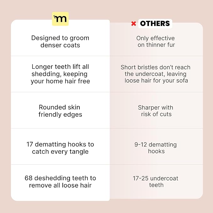 - Gentle Undercoat Care: Keep your pup's coat tangle-free with this dog hair brush designed for both long-haired and short-haired breeds. Its smooth edges make it a breeze to brush sensitive areas without worries