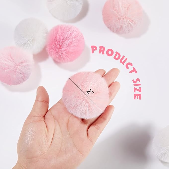 Weewooday 12 Pieces Cat Pom Pom Balls Toys Large Fuzzy Cat Ball Artificial Large Plush Ball for Cats Pets Interactive Playing Indoor(Pink, White,Solid Color)