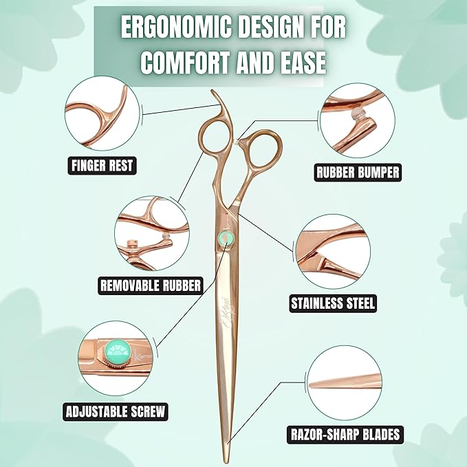 Kenchii Rose Dog Grooming Scissors, 9 Inch Straight Shears, Dog Scissors for Grooming, Ergonomic Design for Comfort and Precision, Heavy Duty, Durable and Sharp