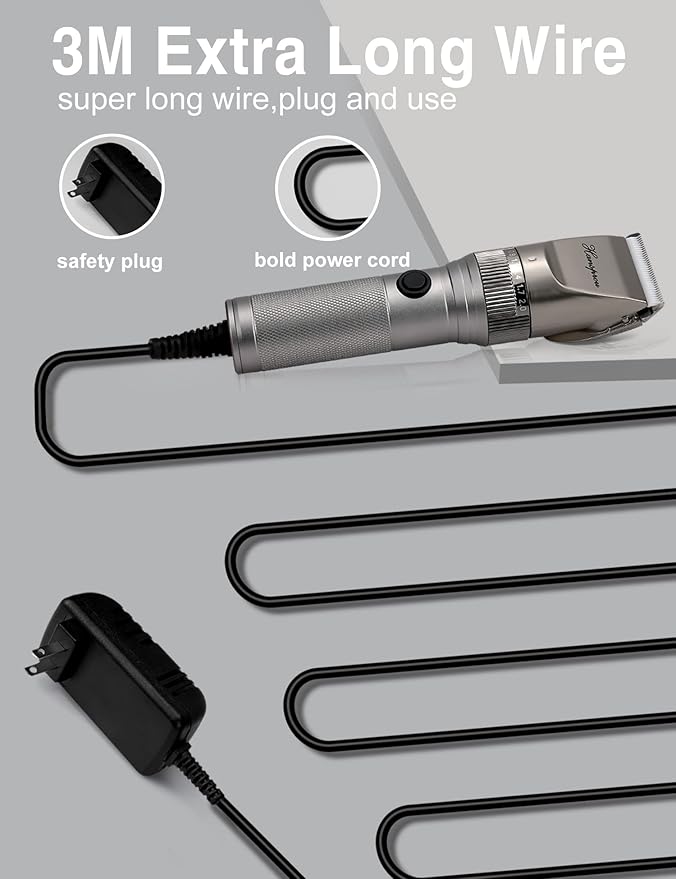 - 12V High -Speed Strong Power Motor: Hansprou professional dog grooming clippers have strong power, no hair sticking, plug and use, no need to charge, to provide strong and stable power, you can use it to fast trim pet's hair and cut through smoothly