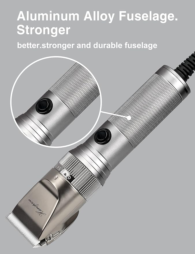 - Aluminum Alloy Fuselage:Aluminum alloy fuselage feels stronger, dog grooming clippers more durable,We believe you will fall in love with Hansprou professional dog grooming clippers