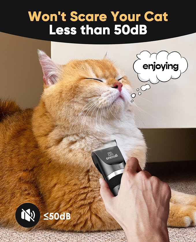 oneisall Quiet Cat Clippers for Matted & Long Hair, 2-Speed Cordless Pet Shaver Grooming Kit for Cats, Small Dogs & Animals (Black)
