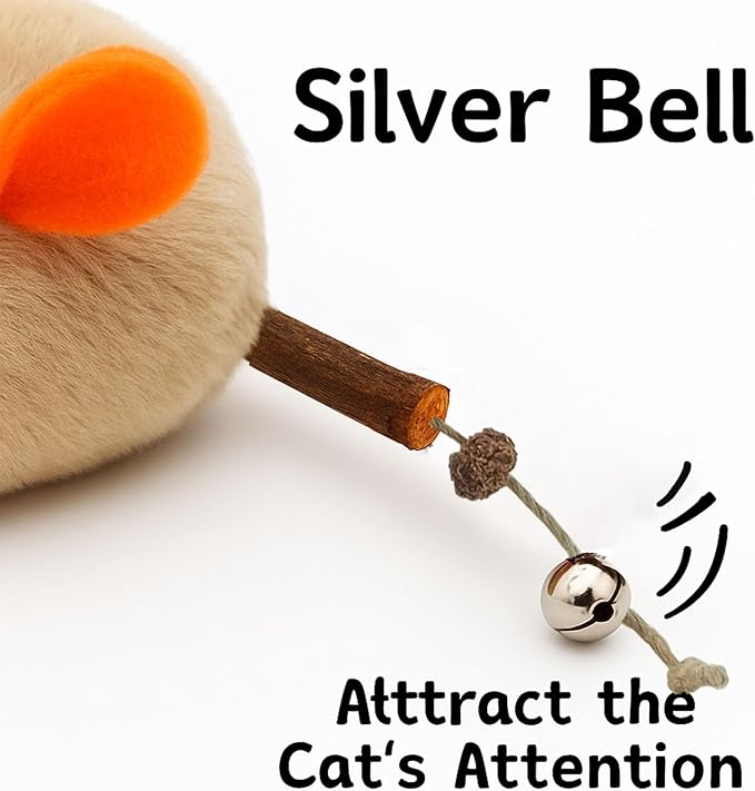 - 😻 3PCS Large Catnip Mouse Toys with Bell Tail Sound This set includes 3 large 8.9" plush mice designed for indoor cats and kittens. The clear, eco-friendly bell at the tail jingles with every bat, pounce, and chase, sparking your cat’s natural hunting instincts. Perfect for interactive sessions or independent play, making them some of the best cat toys for indoor cats.
