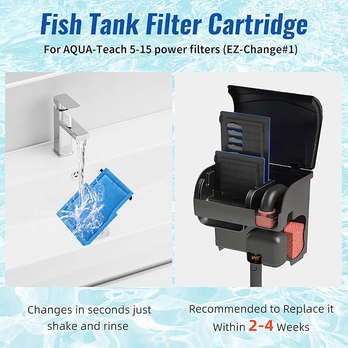 - Aquarium filters 30-60 gallon/20-40 gallon fish tank are easy to change. To ensure optimal cleanliness, we recommend replacing the aquarium filter cartridges every 2 to 4 weeks