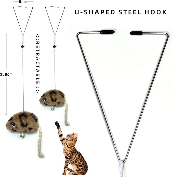 - Adjustable-Elastic: Using elastic rope, the length can also be adjusted through the device to adjust to the appropriate height, the mouse will be pulled by the cat and fly around, trying to catch but not being able to catch, it will make the cat crazy