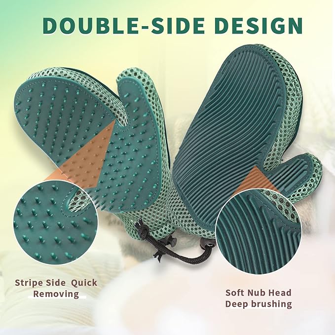 - Pets Love Glove; Pet brush glove makes hair shed in soft massage which makes cats and dogs enjoy petting. Great for dogs and cats with short, medium, curly, or long coats, the grooming glove makes bathing, grooming, and cleaning an enjoyable experience for both you and your pet! Daily removing hair not only helps reduce flying hair in the air, also stimulates skin oils and improves coat softness and shine