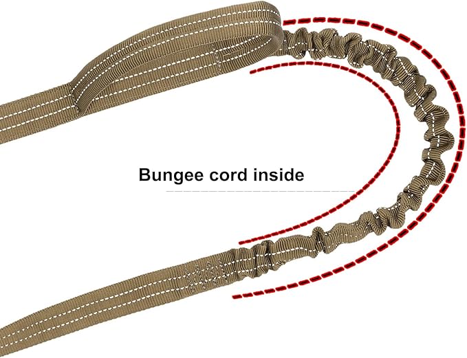 ICEFANG Tactical Dog Leash,K9 Training Walking Bungee Lead with 2 Control Handle,Heavy Duty Quick Release Metal Clasp,Hands Free D-Ring for Medium Large Dogs (4ft,Reflective Brown)