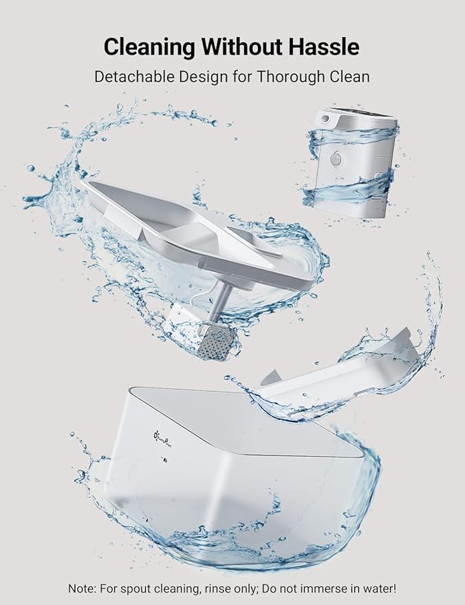 - Cleaning Is A Breeze - DownyPaws cat water fountain wireless is BPA-free and helps prevent pet acne. All parts are easy to assemble and disassemble, makes it super easy to clean every corner without hassle. NOTE: For the spout cleaning, rinse only, don't immerse the battery compartment in water