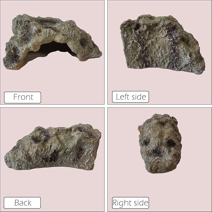 - Size – The cave has a suitable size entrance (Please read the measurement pic for details). The edges of this reptile cave and rock are crafted exquisitely to be smooth and safe to avoid cutting your pet. This reptile rock creates a comfortable and natural hide for ball python, bearded dragon, leopard gecko, tortoise and lizards, etc.
