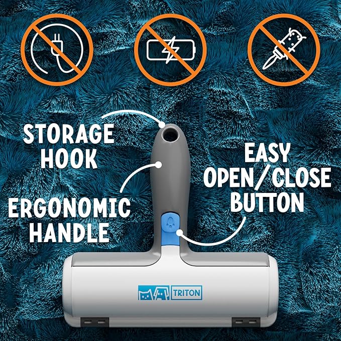 Triton Pet Hair Remover w/Fur Trapping Compartment - Easy to Use Pet Hair Removal Tool - Cat & Dog Hair Remover for Couch, Furniture, Clothes, Bedding, Car - Reusable Lint Roller