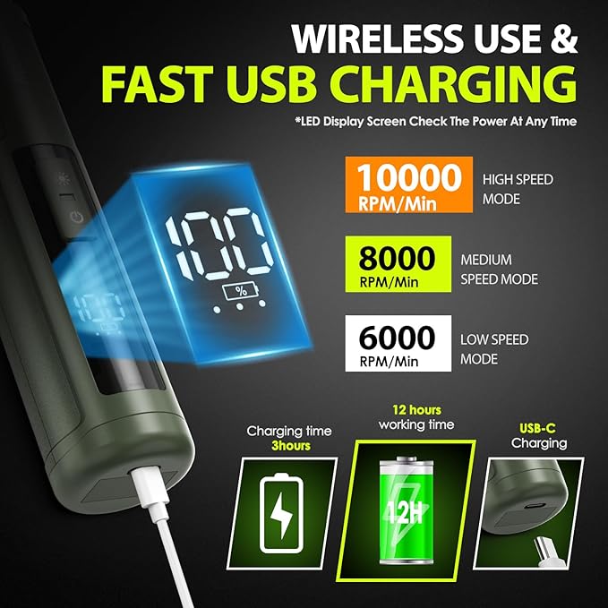 - 【3 Speed Switch & Grinding Ports】: IREDOON dog nail trimmer boasts a 3-speed switch and 3 grinding ports, which allows pet owners to adjust the speed and grinding settings based on their pet's size and nail hardness.