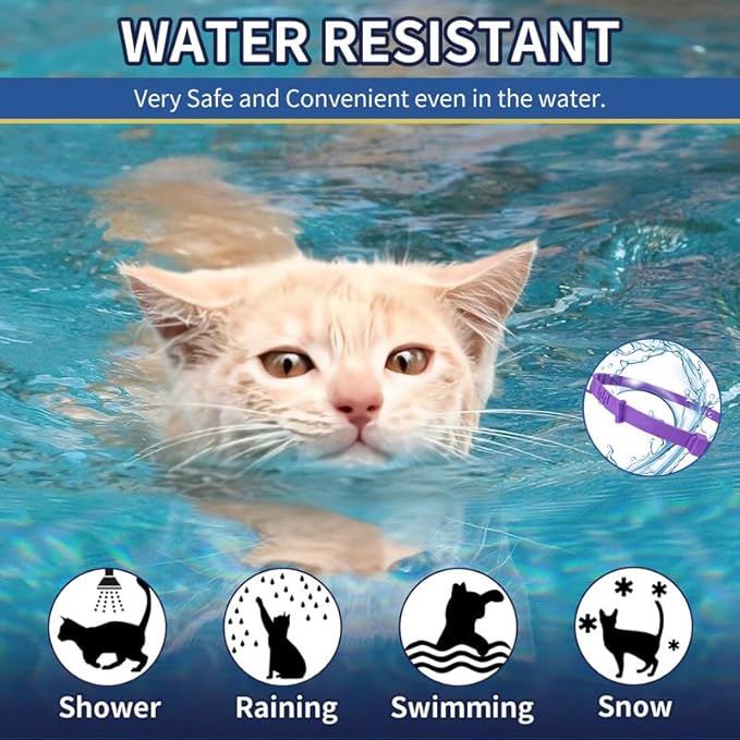 - NON-GREASY & WATER-RESISTANT - The flea treatment cat collar is also designed with water-resistant capabilities, so your cat can put on it without worry even on rainy days, during baths, swimming, or any wet conditions. Additionally, The non-greasy formula won't leave any residue on your cat's fur or your hands. Say goodbye to messy treatments.