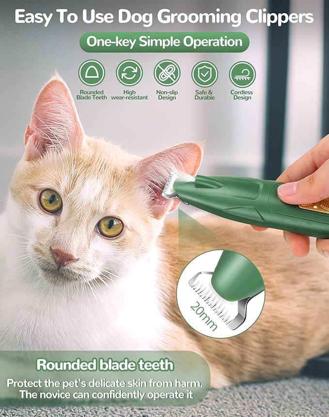 - Perfect Dog Trimmer for Grooming Small Areas: This dog paw trimmer is designed to clean small areas of pets. Upgraded stainless 0.8-inch widening blades increase the area of hair-shaving, improving your trimming efficiency for small areas, and more flexible and precise pet hair trimming on small areas such as paws, ears, eyes, rump, etc.