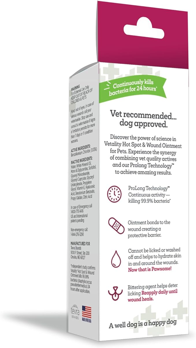 - Heals Wounds Up to 3 Times Faster - Vetality Hot Spot and Wound Ointment kills 99.99% of bacteria in the first 24 hours, soothing rashes, irritated skin or fur, wounds, and hots spots up to three times faster than other treatments.