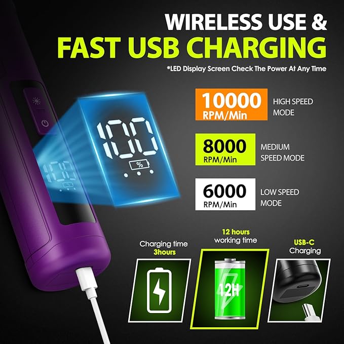 Dog Nail Grinder Upgraded - Professional 3-Speed Super Quiet and Low Vibration Electric Pet Nail Grinder with 4 LED Lights - Painless Paws Grooming & Smoothing for Small to Large Dogs (Purple)