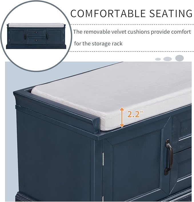 - The removable velvet cushion provides comfort for the storage rack, where you and your family can put on your shoes while sitting instead of squatting. The cushion thickness: 2.2inches.