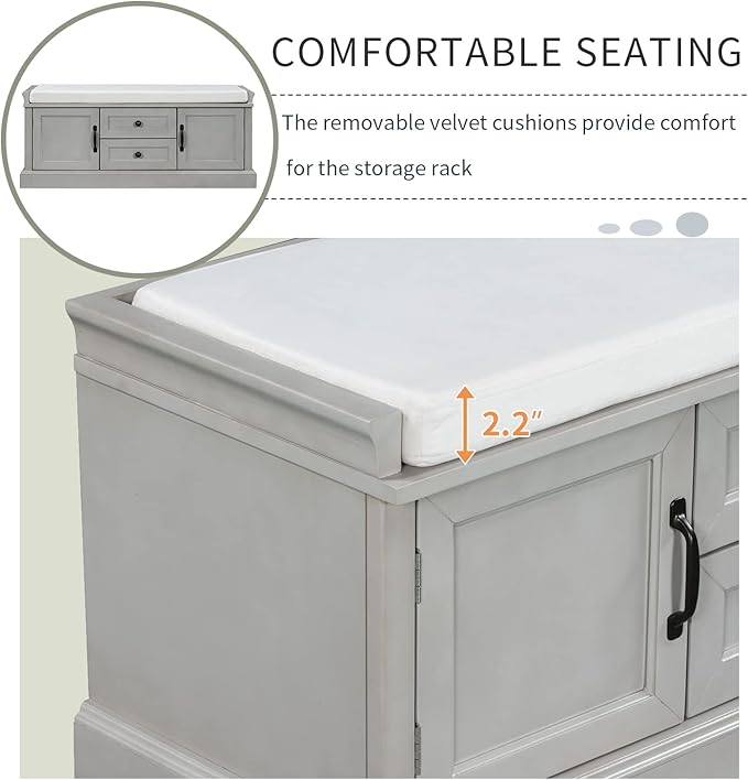 - The removable velvet cushion provides comfort for the storage rack, where you and your family can put on your shoes while sitting instead of squatting. The cushion thickness: 2.2inches.
