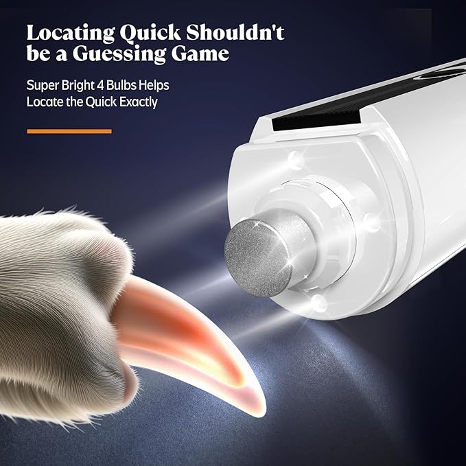 - 𝙏𝙧𝙞𝙢𝙢𝙞𝙣𝙜 𝙙𝙤𝙜 𝙣𝙖𝙞𝙡𝙨 𝙨𝙝𝙤𝙪𝙡𝙙𝙣'𝙩 𝙗𝙚 𝙖 𝙜𝙪𝙚𝙨𝙨𝙞𝙣𝙜 𝙜𝙖𝙢𝙚: The 4 lights in all directions ensures you can see quick and nail details, making the process stress-free for both you and your furry friends, even during evening nail care sessions