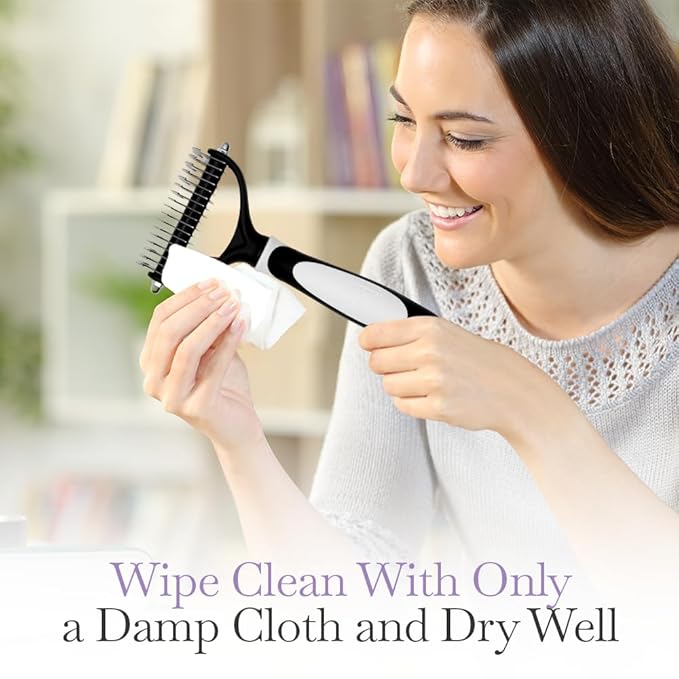 - Dual-Head Dematting Pet Comb: Expertly crafted of stainless steel teeth with slightly sharp edges – 17 narrow-gap teeth on one side and 9 wider-gap teeth on the other – Fuller’s Dual-Head Dematting Pet Comb is a great tool for grooming all dogs and cats.